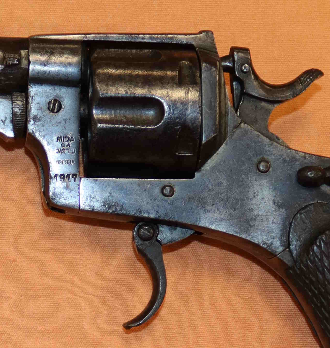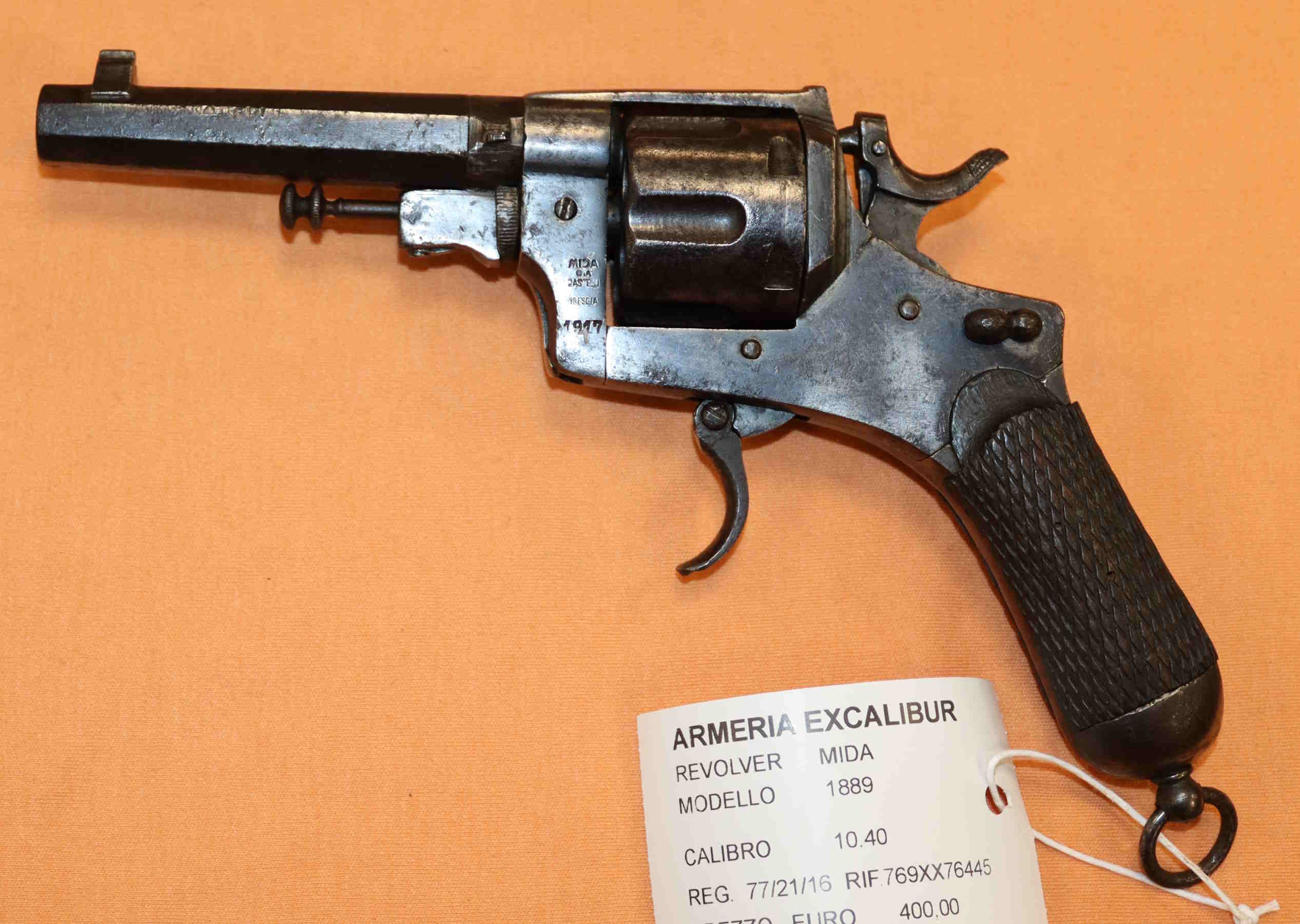 Revolver Mida mod. 1889 calibro 10.40 come da foto. Eventuali aloni o macchie che potete vedere nelle foto sono residui olio e grasso di protezione o riflessi del flash.Possibilità di spedizione tramite armerie (50,00 euro---80,00 euro isole).