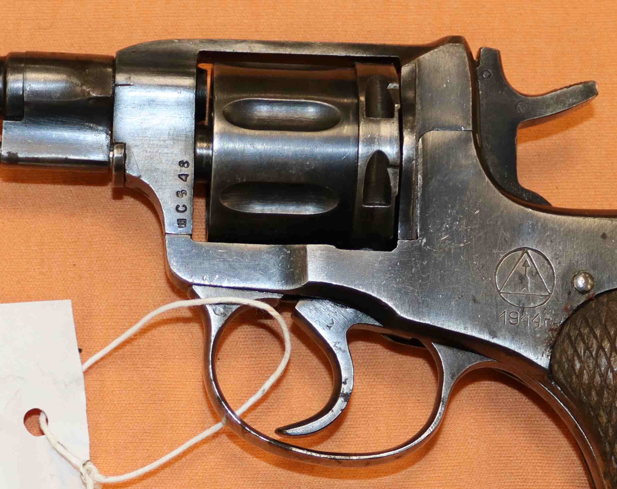 Revolver Nagant mod. 1895 calibro 7,62 Nagant come da foto. Eventuali aloni o macchie che potete vedere nelle foto sono residui olio e grasso di protezione o riflessi del flash.