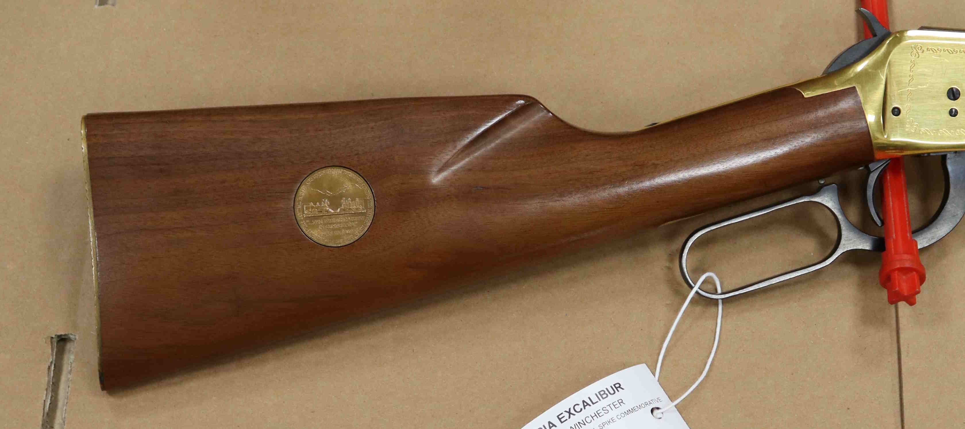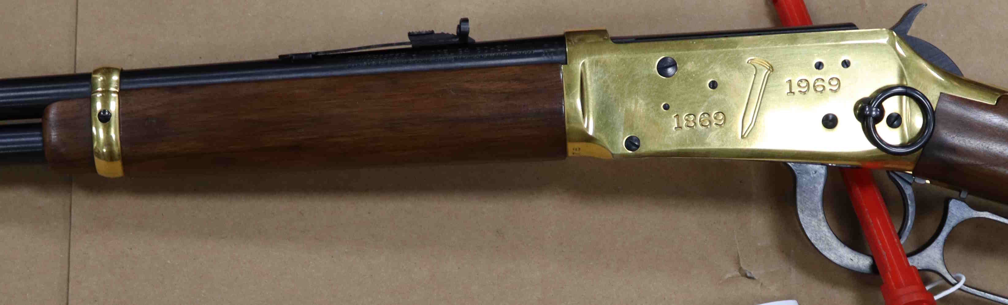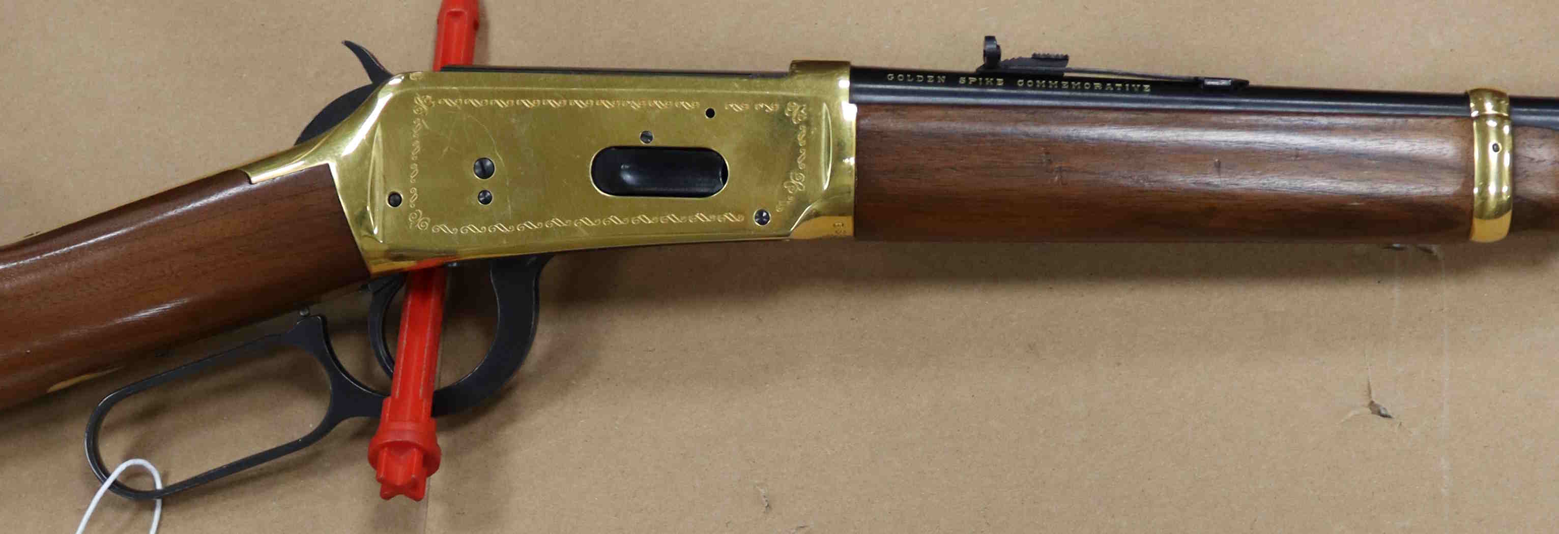 Carabina a leva Winchester mod.1894 Golden Spike Commemorative in calibro 30-30 NRA Centennial solo provata praticamente nuova . Eventuali aloni o macchie che potete vedere nelle foto sono residui olio protezione o riflessi del flash.Possibilità di spedizione tramite armerie (50,00 euro--80,00 euro isole).