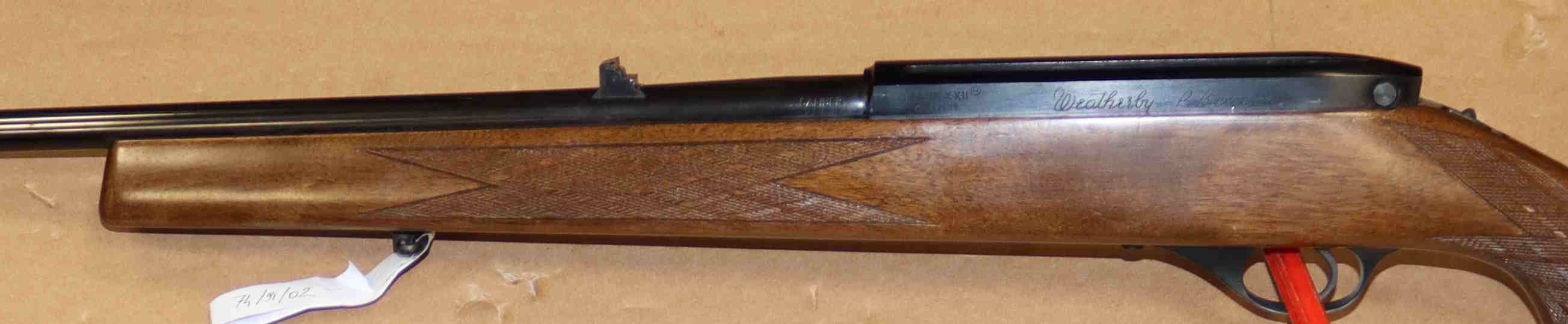 Carabina Weatherby Mark XXII in calibro 22LR in buone condizioni generali. Eventuali aloni o macchie che potete vedere nelle foto sono residui olio e grasso di protezione o riflessi del flash.