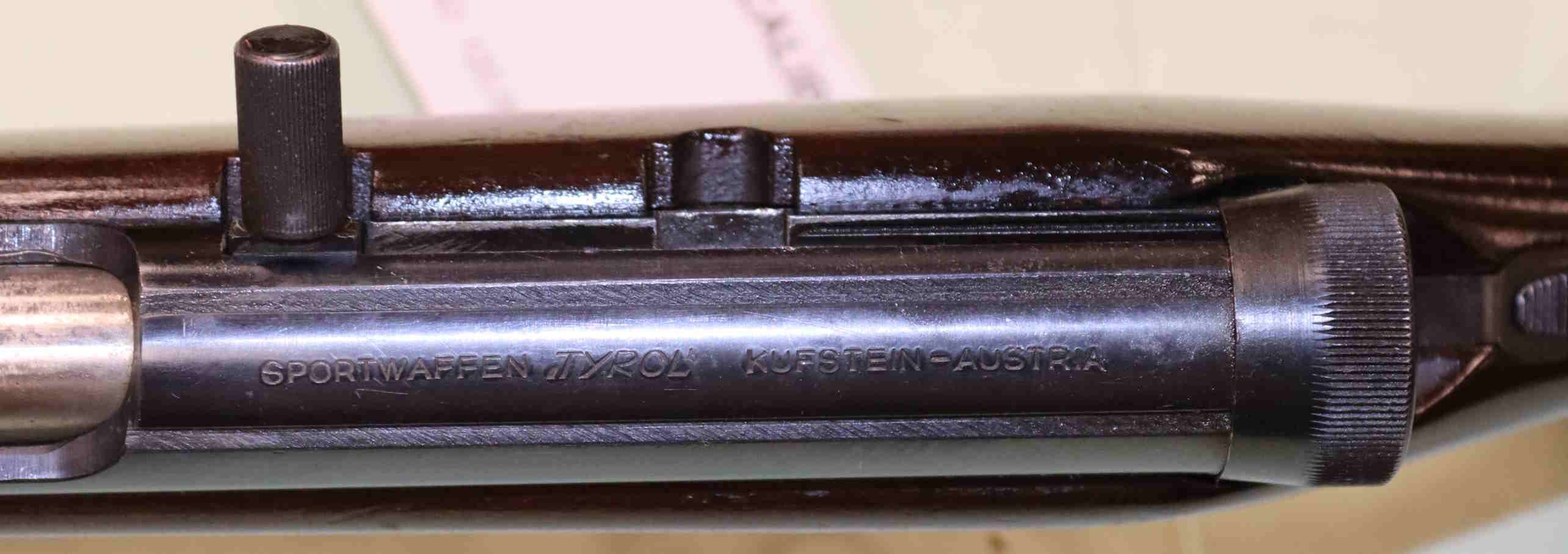 Carabina Tirol in calibro 22LR. Eventuali aloni o macchie che potete vedere nelle foto sono residui olio protezione o riflessi del flash.