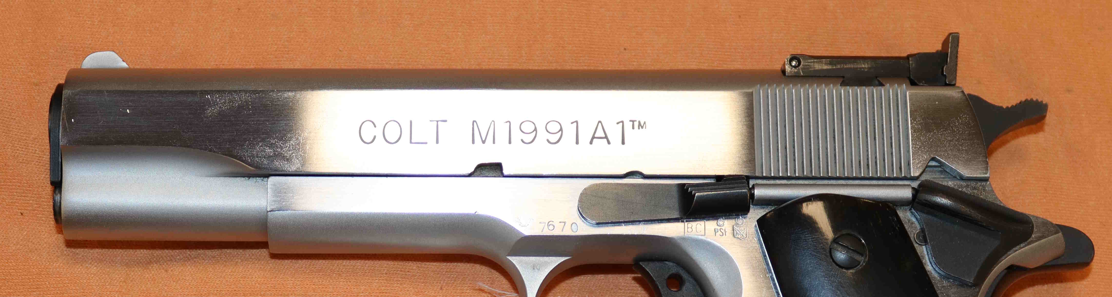 Pistola Colt M1991A1 in calibro 45ACP classificata sportiva in buonissime. Eventuali aloni o macchie che potete vedere nelle foto sono residui olio protezione o riflessi del flash.