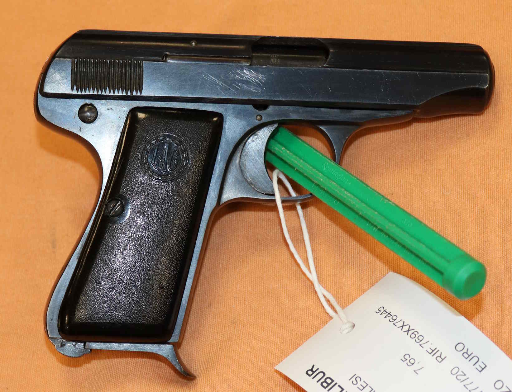 Pistola Galesi in calibro 7,65 in buone condizioni Eventuali aloni o macchie che potete vedere nelle foto sono residui olio e grasso di protezione o riflessi del flash.