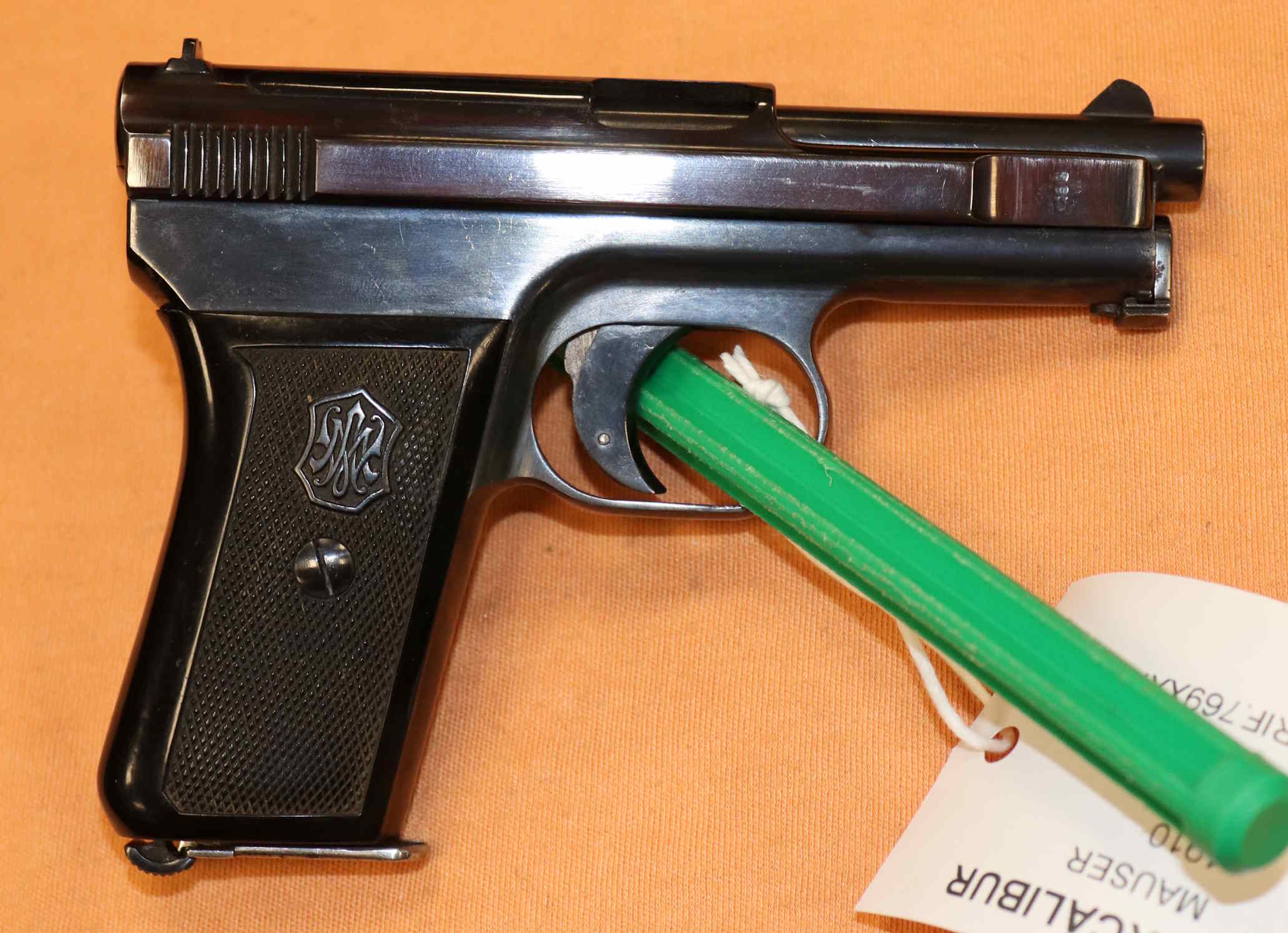 Pistola Mauser 1910 in calibro 6,35 in buone condizioni Eventuali aloni o macchie che potete vedere nelle foto sono residui olio e grasso di protezione o riflessi del flash.