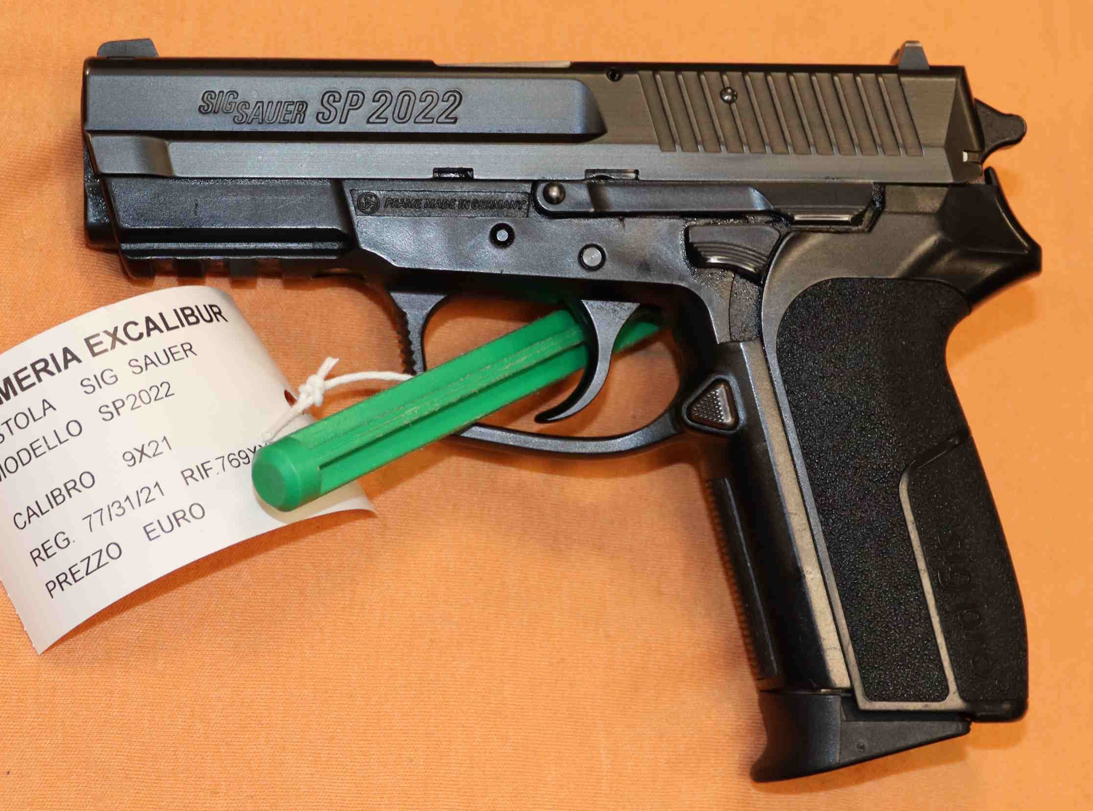 Pistola Sig Sauer SP2022 calibro 9X21 in buonissime condizioni generali. Eventuali aloni o macchie che potete vedere nelle foto sono residui olio e grasso di protezione o riflessi del flash.