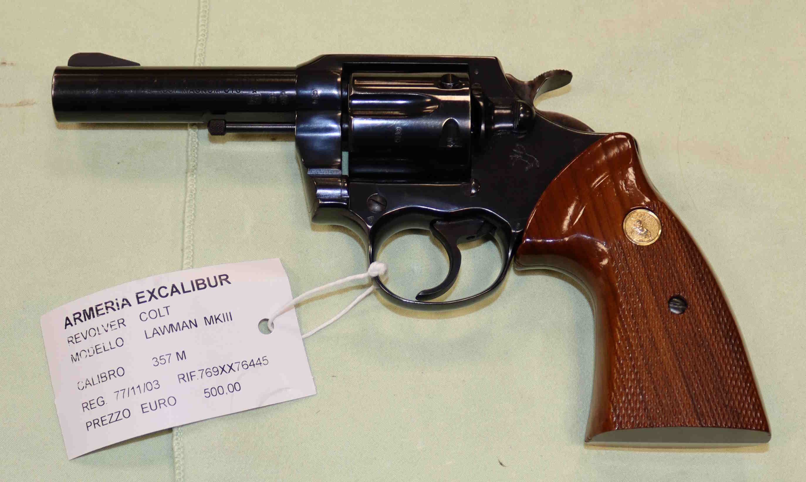 (77/11/03)2025 Revolver Colt Lawman MKIII in calibro 357M. buonissime in condizioni. Eventuali aloni o macchie che potete vedere nelle foto sono residui olio protezione o riflessi del flash.