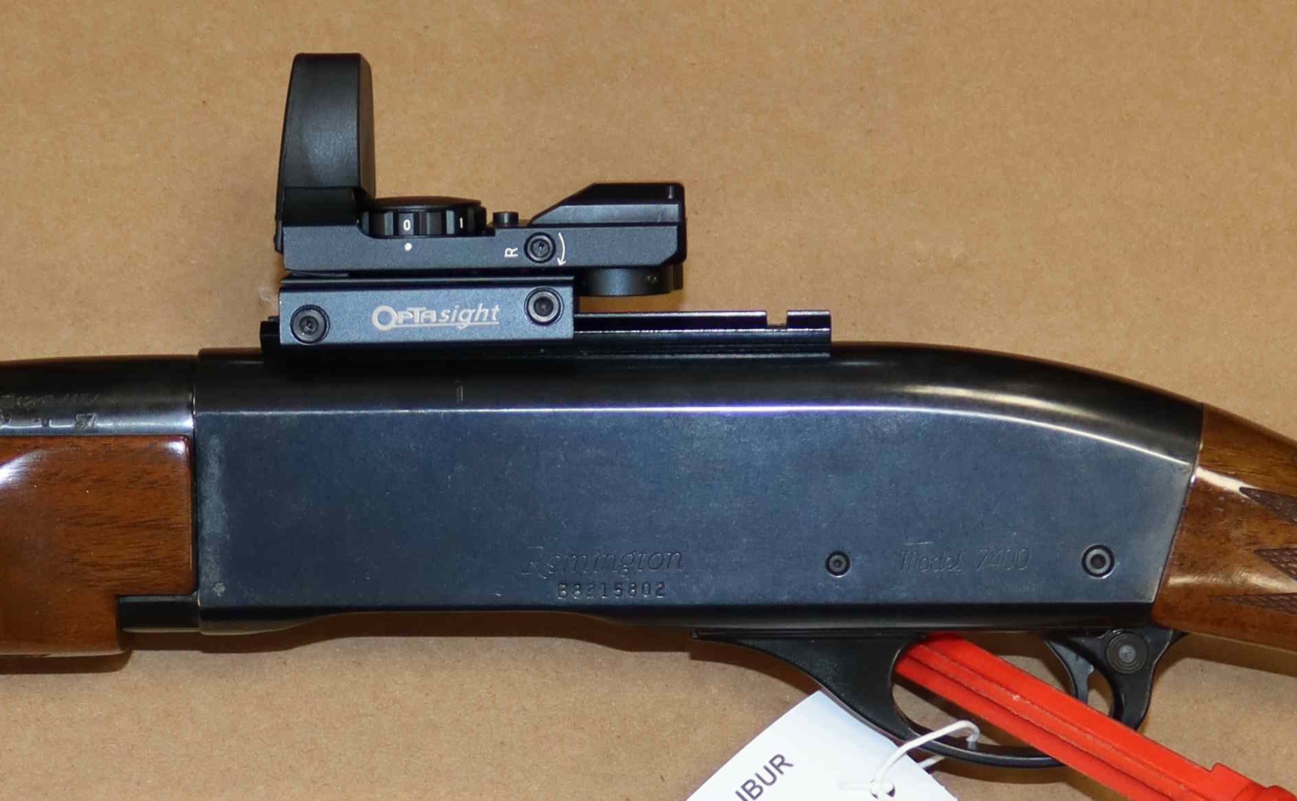 Carabina semi Remington mod. 7400 in calibro 30-06 completa di red-dot come da foto. Eventuali aloni o macchie che potete vedere nelle foto sono residui olio e grasso di protezione o riflessi del flash.
