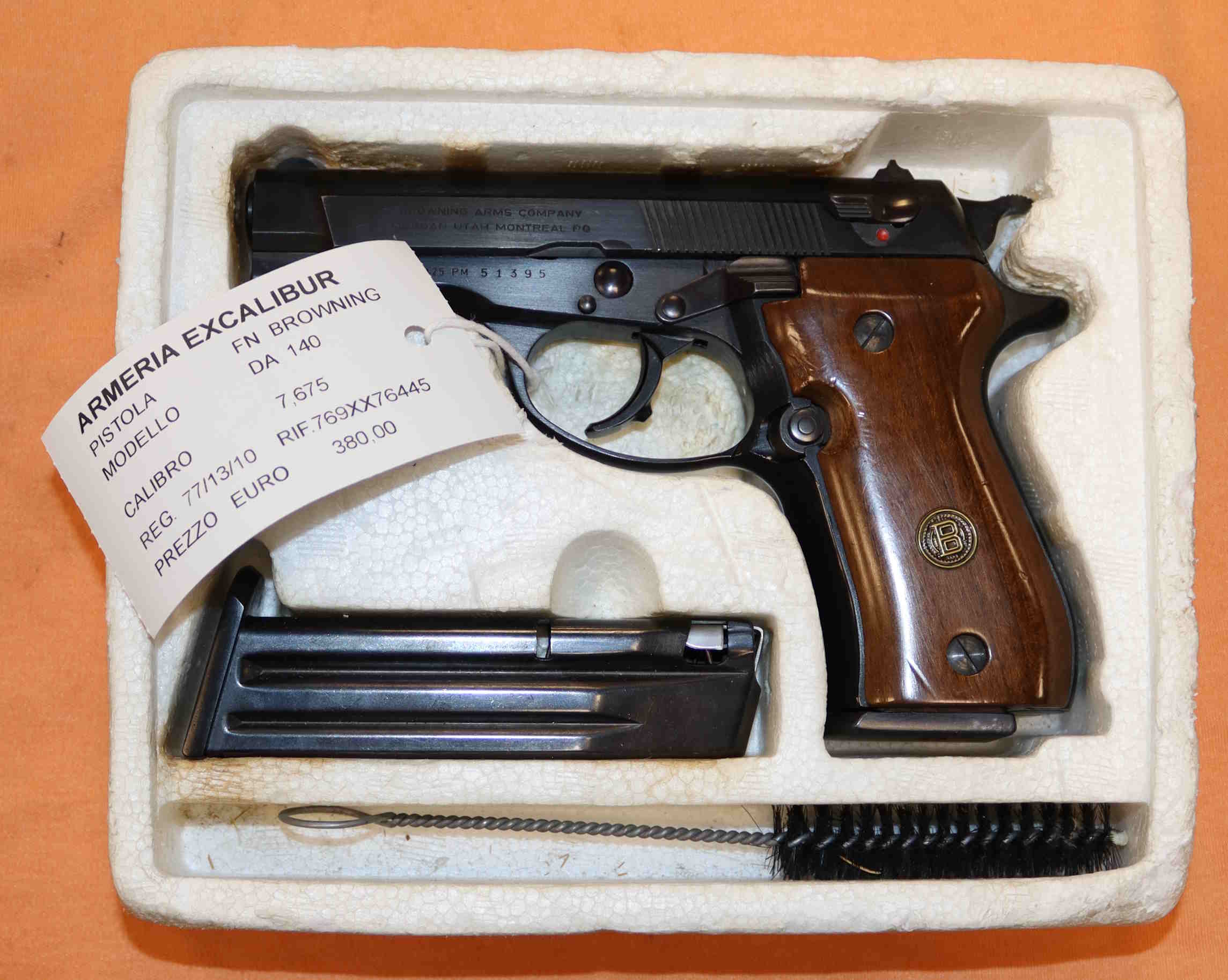 Pistola FN Browning DA 140 in calibro 7,65 in eccezionali condizioni. Eventuali aloni o macchie che potete vedere nelle foto sono residui olio e grasso di protezione o riflessi del flash.Possibilità di spedizione tramite armerie (50,00 euro--80 euro isole).