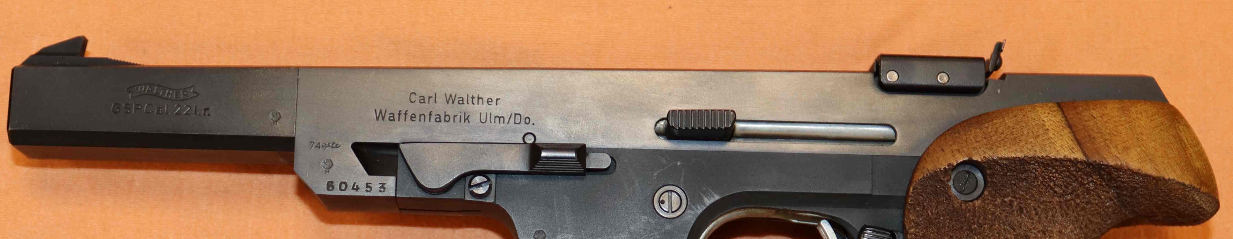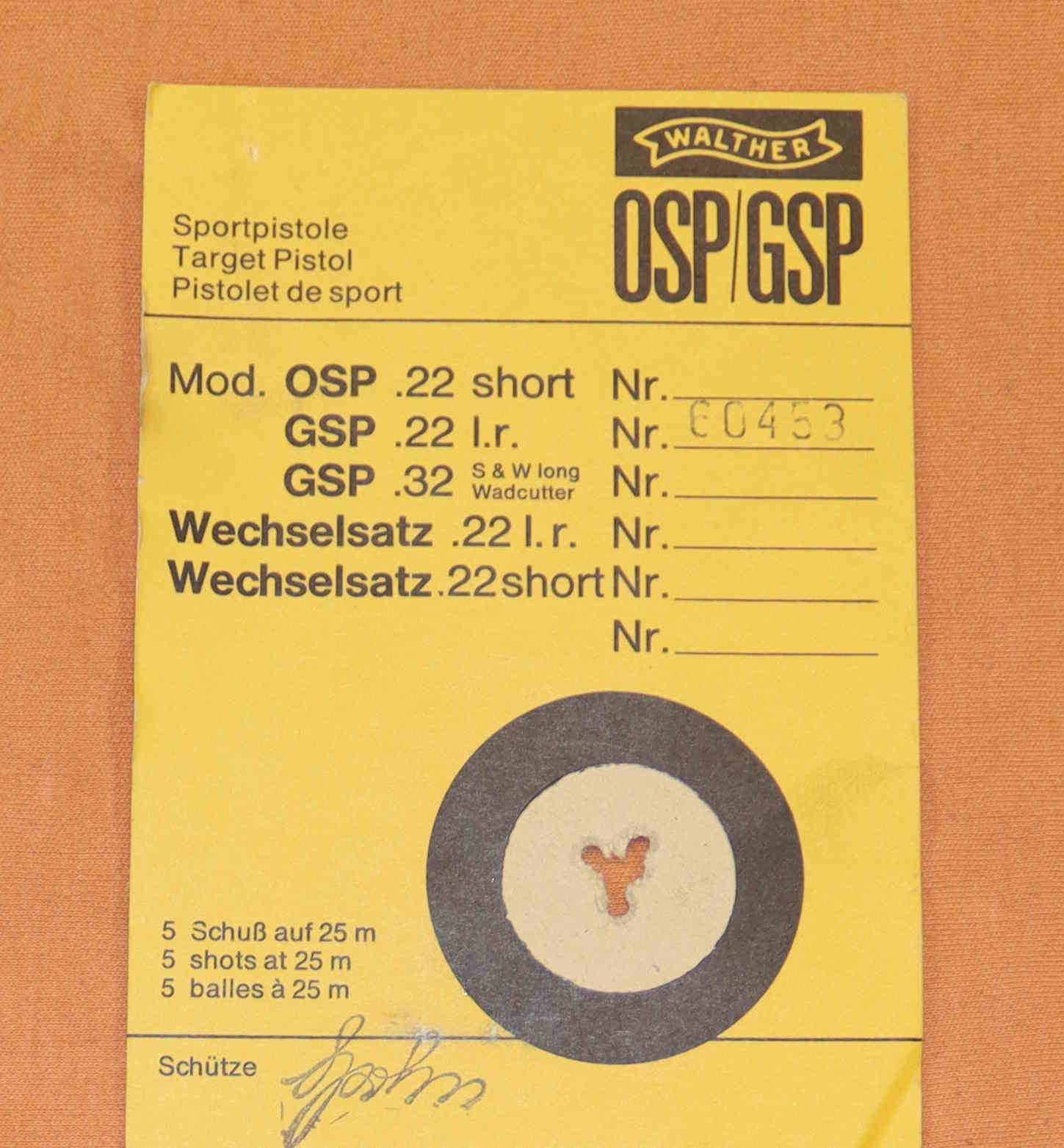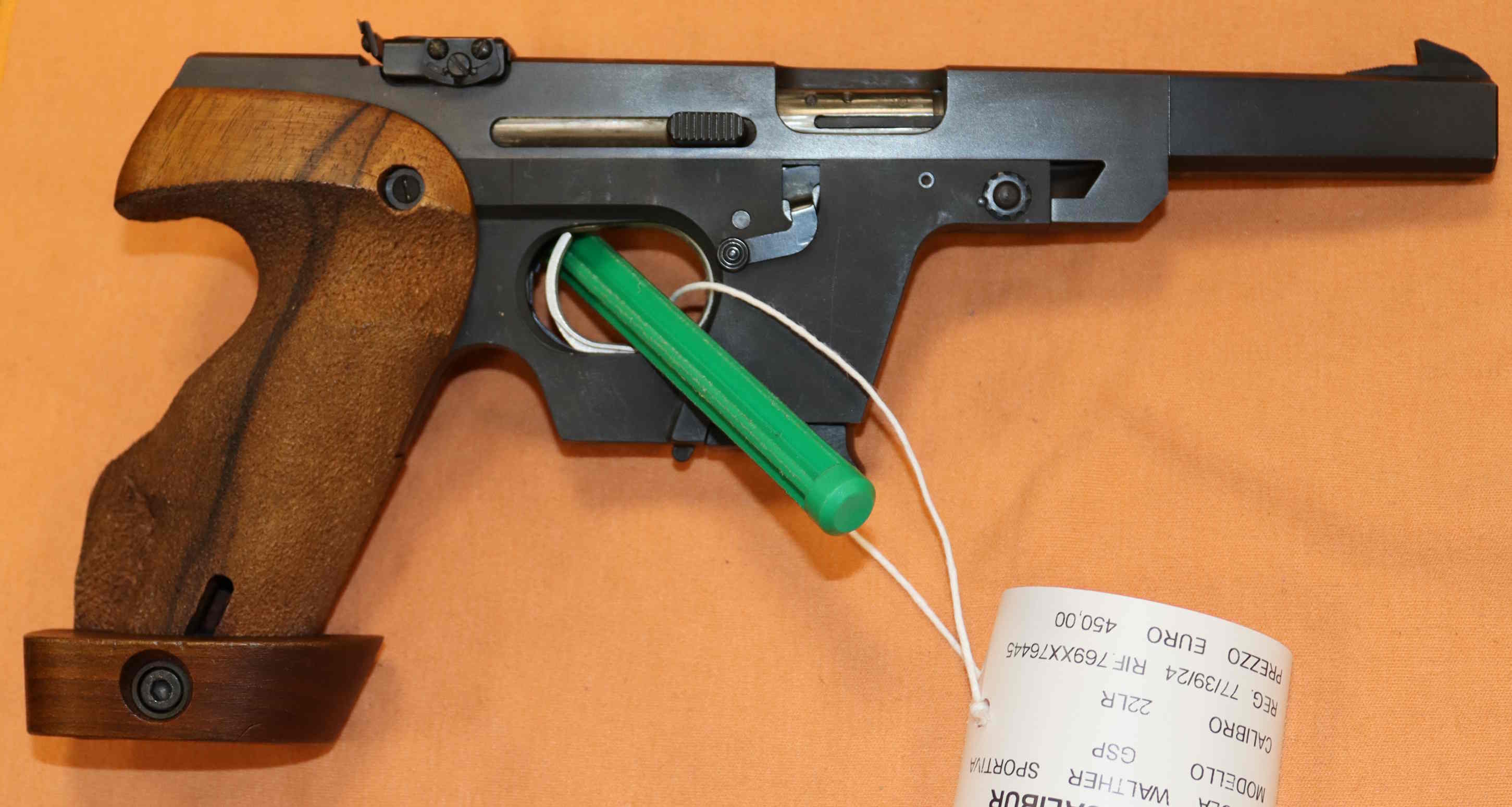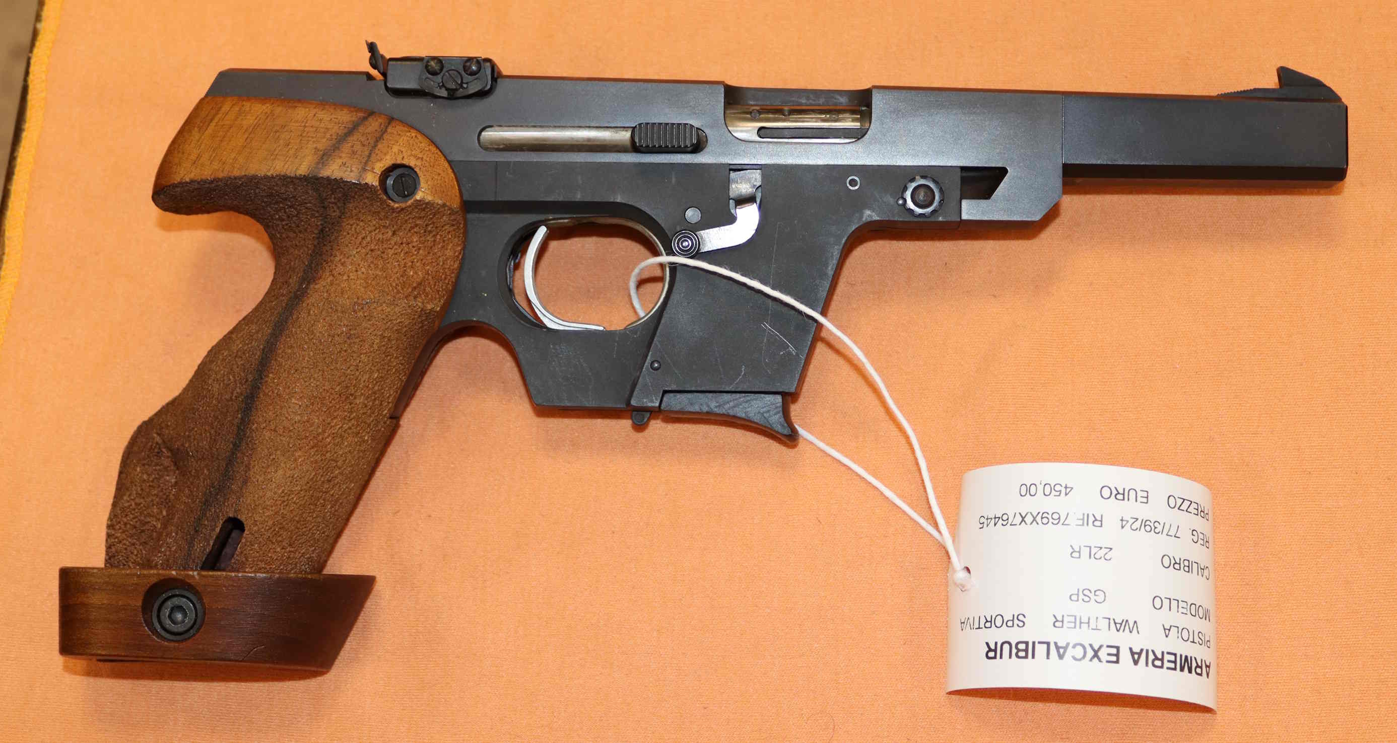 Pistola Walther mod. GSP in calibro 22 LR in eccellenti condizioni ,classificata sportiva, arma molto precisa vedi la prova di tiro. Eventuali aloni o macchie che potete vedere nelle foto sono residui olio e grasso di protezione o riflessi del flash.